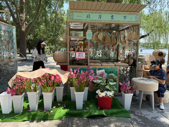 “北岸吉市”除了集合了多个非遗文创,还“时令上线”白洋淀风物、荷花主题宫廷下午茶。受访者供图相关负责人告诉新京报记者,夏季来临,“北岸吉市”也加入了更多时令、节气的特点。从6月28日起,充满“白洋淀风味”的荷花、莲蓬,以及雄安新区安新县赵北口镇“创富工坊”旗下“雄安蒲艺师”品牌的苇编收纳篮等8大类50余种风物、非遗制品和游客见面。仿膳茶社同步推出“菡萏茶话”荷花主题非遗手工下午茶以及“淀泊寻鲜”系列茶点,“颜值爆表”的莲蓬酥、芡实山楂酥、四神糕、银耳莲子羹、荷叶冬瓜茶兼具时令养生特点,保留了仿膳细点“酥香软糯”的技艺精髓,又创新融入湿地生态食材。