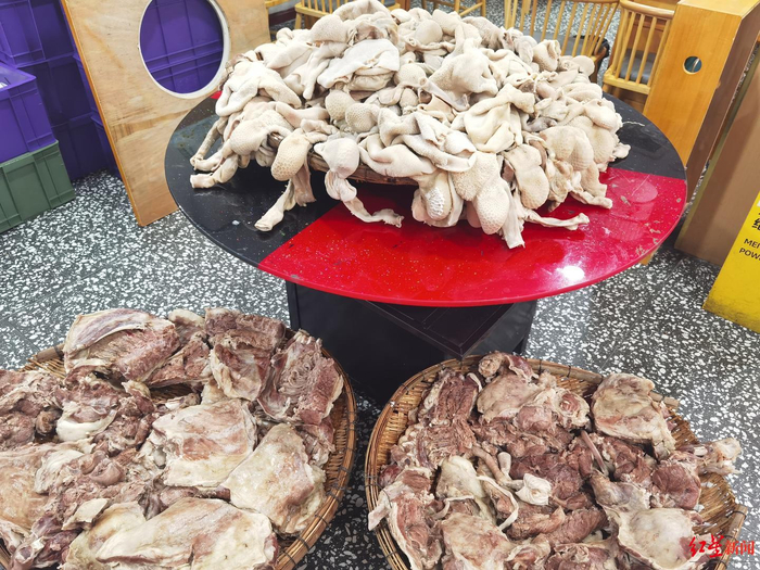 ▲商家备货12月19日下午,红星新闻记者来到小关庙街。肖半仙羊肉汤店负责人蔡女士告诉记者,冬至前后订单量会上涨,当天是最多的。“目前已经有二十来桌预订冬至当天桌位。”为应对客流高峰,该店预计将桌位从40张扩至140多张,并摆至店外,“冬至当天桌位会坐满,六点后就需要排位了”。她还表示,去年冬至营业至凌晨1点,今年预计需招聘30名兼职员工,“现在已经在陆陆续续备货,每日煮肉、切肉量翻倍。”