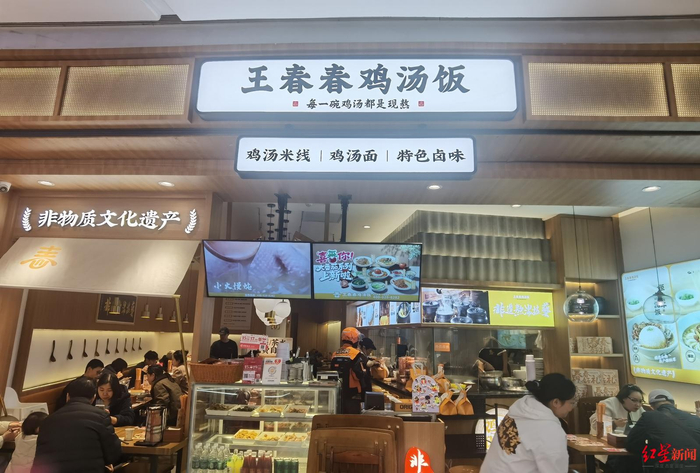 19日中午,红星新闻记者在王春春鸡汤饭(大悦城店)看到,店内座无虚席,出餐口还摆放着十多份待取的外卖。一位在附近上班的食客笑着说:“冬天太冷了,喝完鸡汤身体暖暖的。冬至当天也要来这里喝一碗。”
